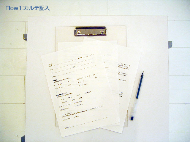 - お名前、ご住所等の必要事項の他、体質、アレルギーの有無など、カルテにそって質問にお答え下さい。