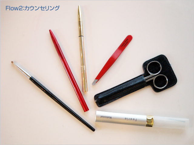 - 普段どのようなメイクをしているか、どのような雰囲気がお好みなのか等、お話を伺いながら、ベストな眉、アイラインのシェイプを作ります。