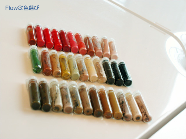 - 肌、髪、瞳の色、を拝見し、30色ほどの色を混ぜながら1人1人に合った色味をお作りします。納得ゆくまでご希望をお伝えください。